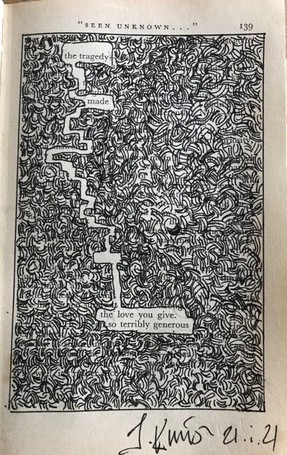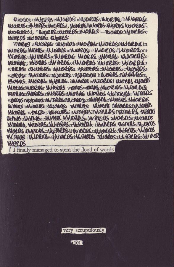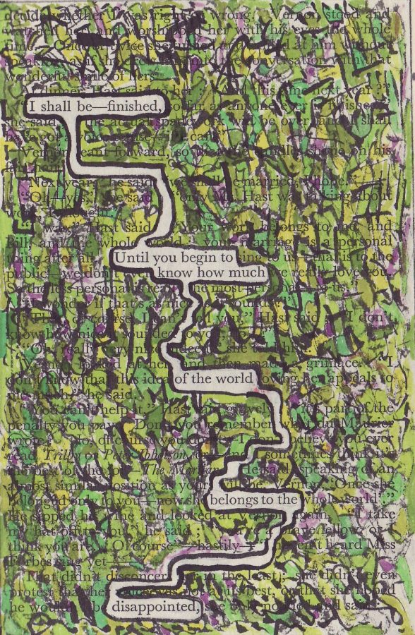 This work is heavily influenced by Tom Phillips and his seminal work “A Humument”. If you’re not familiar with him please have a look at his website www.tomphillips.co.uk